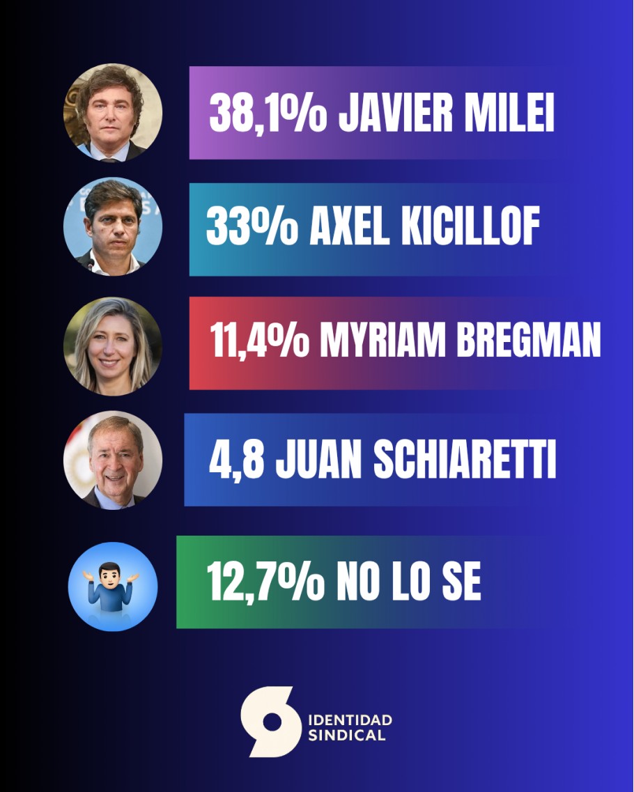 El informe también destaca el crecimiento de la izquierda: Myriam Bregman alcanza el 11,4%, logrando ubicarse en tercer lugar con un desempeño que la coloca en dos dígitos.